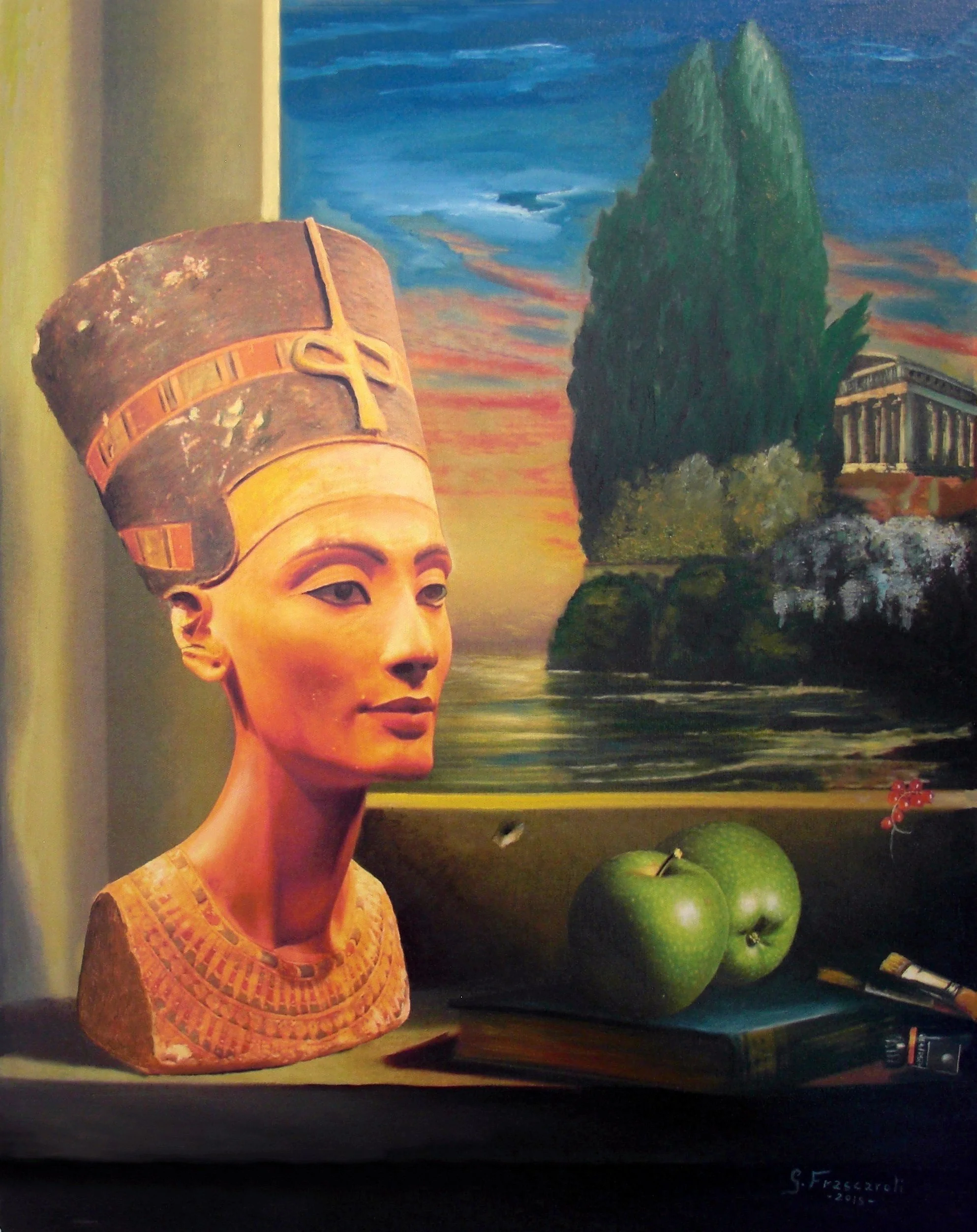 LA CIVILTA' EGIZIA VEDE L'ALBA DELLA CIVILTA' ELLENICA, olio su tela ccm 70x55 - 2015
